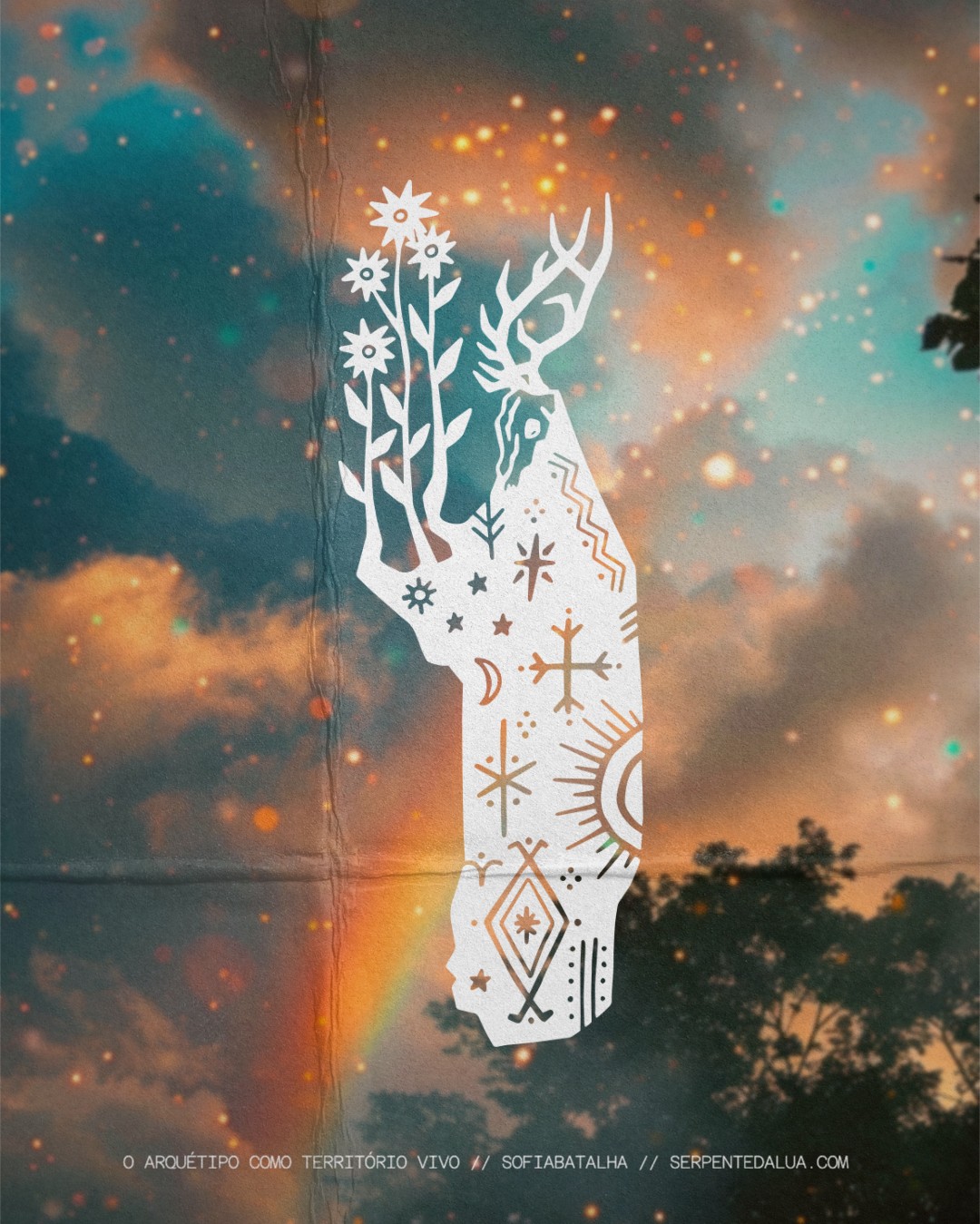 Este projeto não é uma plataforma para respostas. É um terreno vivo de perguntas, texturas mitopoéticas e ofertas eco-mitológicas. Aqui caminhamos ao lado dos mistérios primevos, das revelações ancestrais subterrâneas, narrativas ecológicas entrelaçadas, sonhos e práticas de escuta corporal que emergem das feridas pessoais e coletivas da separação moderna. Não estamos aqui para extrair significado, mas para sermos sujados e transformados pelo que ainda não conhecemos.