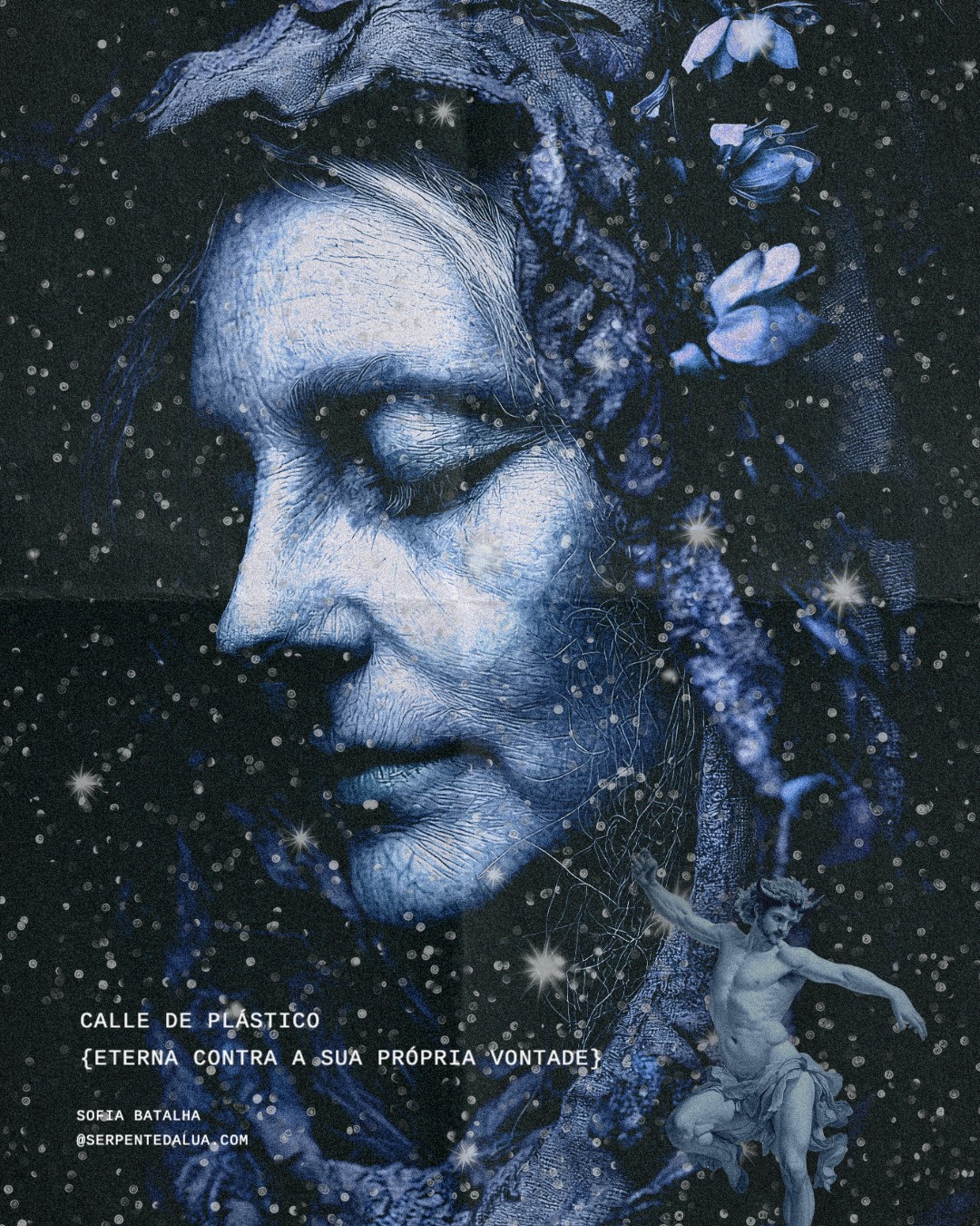 Mas um ano, e ninguém sabe quando, algo mudou. Calle parou de desaparecer. Ela parou de se dissolver, deixou de se transformar em musgo, ou desintegrar-se no húmus. As suas tranças brancas endureceram-se em fios sintéticos brilhantes, reluzindo em cores plásticas que o rio nunca conhecera. A sua vassoura não varria mais o velho; em vez disso, arrastava fragmentos que se multiplicavam atrás dela, pequenos cacos que resistiam ao clima, à água e ao próprio tempo. Sem querer, Calle tornou-se uma deusa da eternidade artificial, um ser que nenhum ciclo podia reivindicar, nenhuma estação podia desfazer. Ela era agora a Velha Imortal, a Senhora de um Inverno que se recusava a terminar.