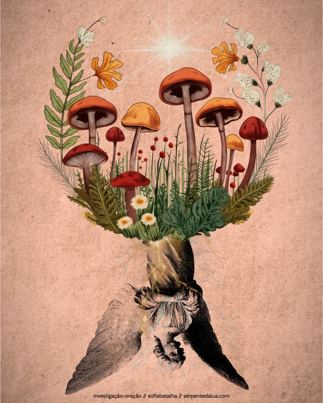 A Investigação-Oração segue rigorosamente os fios rizomáticos que se desdobram debaixo do chão da nossa psique moderna/ocidental — vestígios de outras formas de caminhar e criar mundo. Apercebo-me agora que este tem sido o processo vivo a que me tenho devotado desde que escrevi o livro “Contos da Serpente e da Lua,” continuando no “Santuário” e nas publicações posteriores — em múltiplas viagens sensoriais de reencontro e entrelaçamento entre histórias, factos, metáforas e ligações improváveis. É o que empurra e puxa nas entrelinhas de um trabalho de investigação com o território que o ancora. Sempre mistérico, sagrado e nunca domesticável. É um caminho de tirar peles, levantar crostas, e desfazer certezas. É um caminho de maturação e responsabilidade.