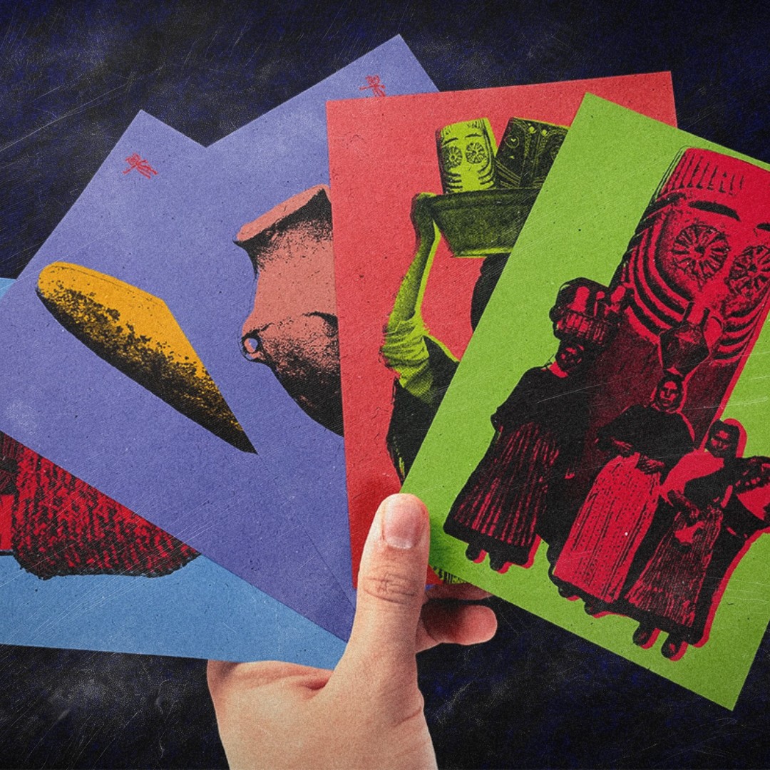 Criei estes postais para me ajudar a atravessar os territórios arcaicos e míticos dos contos portugueses. Ao encomendares, receberás 5 postais A6 diferentes.